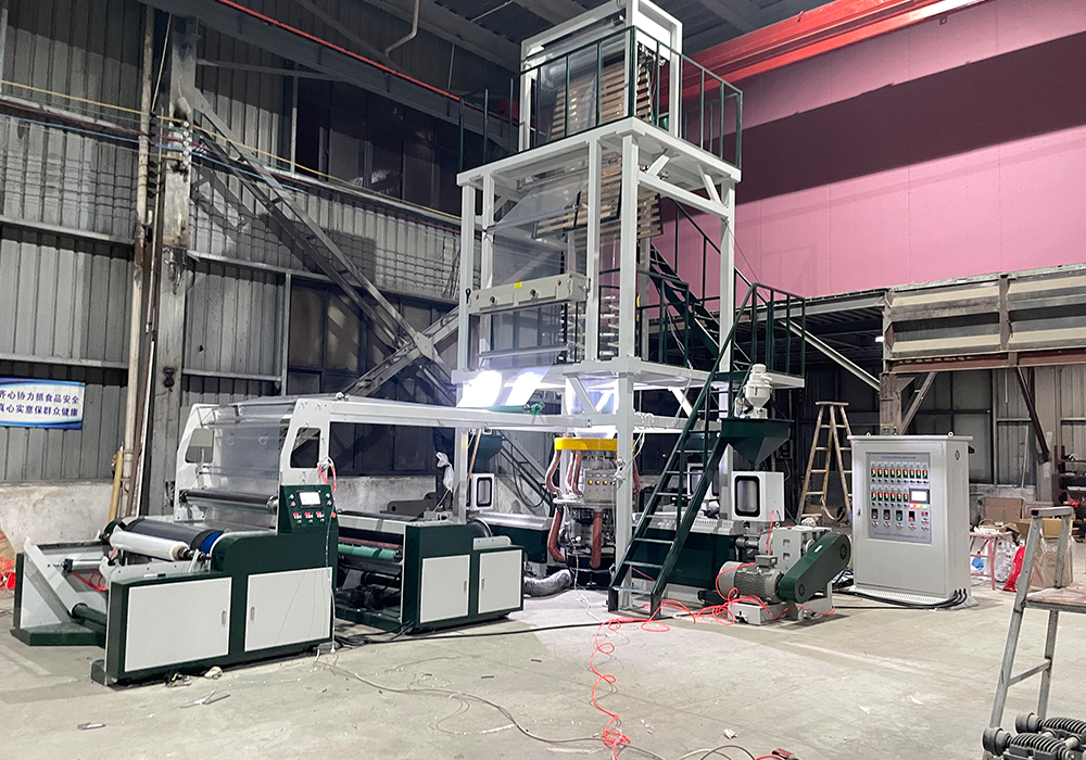 ABC type 3 Layer co extrusion film blowing machine it can be used for the production of a wide range of general packaging films, and can be used to produce symmetrical film, including liquid packaging film, shrink/stretch film, electrostatic protection film, the waterproof film in ponds, heavy packaging film, etc. Film width can be customized according to customer requirements, from 800mm to 2500mm. High precision die head and cooling air ring provide good film thickness control and resistance.