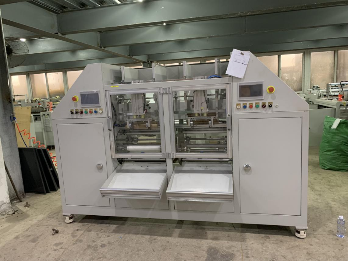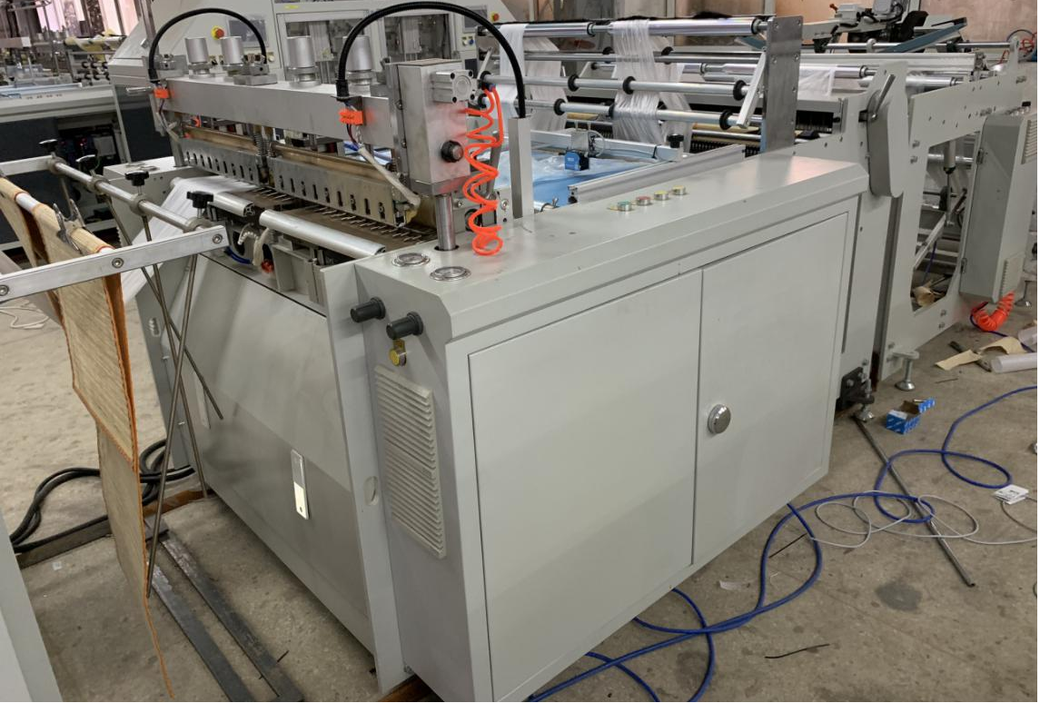 The flat/ vest bag on roll making machine is used to produce flat bag on roll , vest bag on roll , rolling flat bag , rolling t shirt bag for food packaging in supermarket .it can do the rolling bag with paper core.