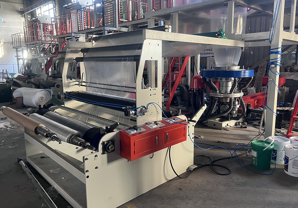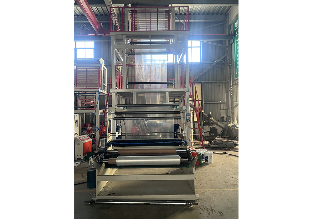 3. This large blown film machine typically consists of an extruder, a die head, a feeding device, a cooling system, a stretching device, and a winding device. Firstly, LDPE pellets are heated and melted in the extruder, then extruded through the die head into a thin film. The film is then cooled by the cooling system to solidify it. Next, the stretching device stretches the film to give it certain strength and elongation. Finally, the film is wound up into finished rolls by the winding device.